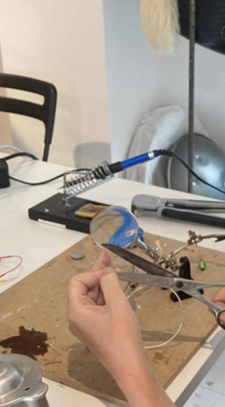 Ciseaux, pince coupante et pince à embouts ronds.