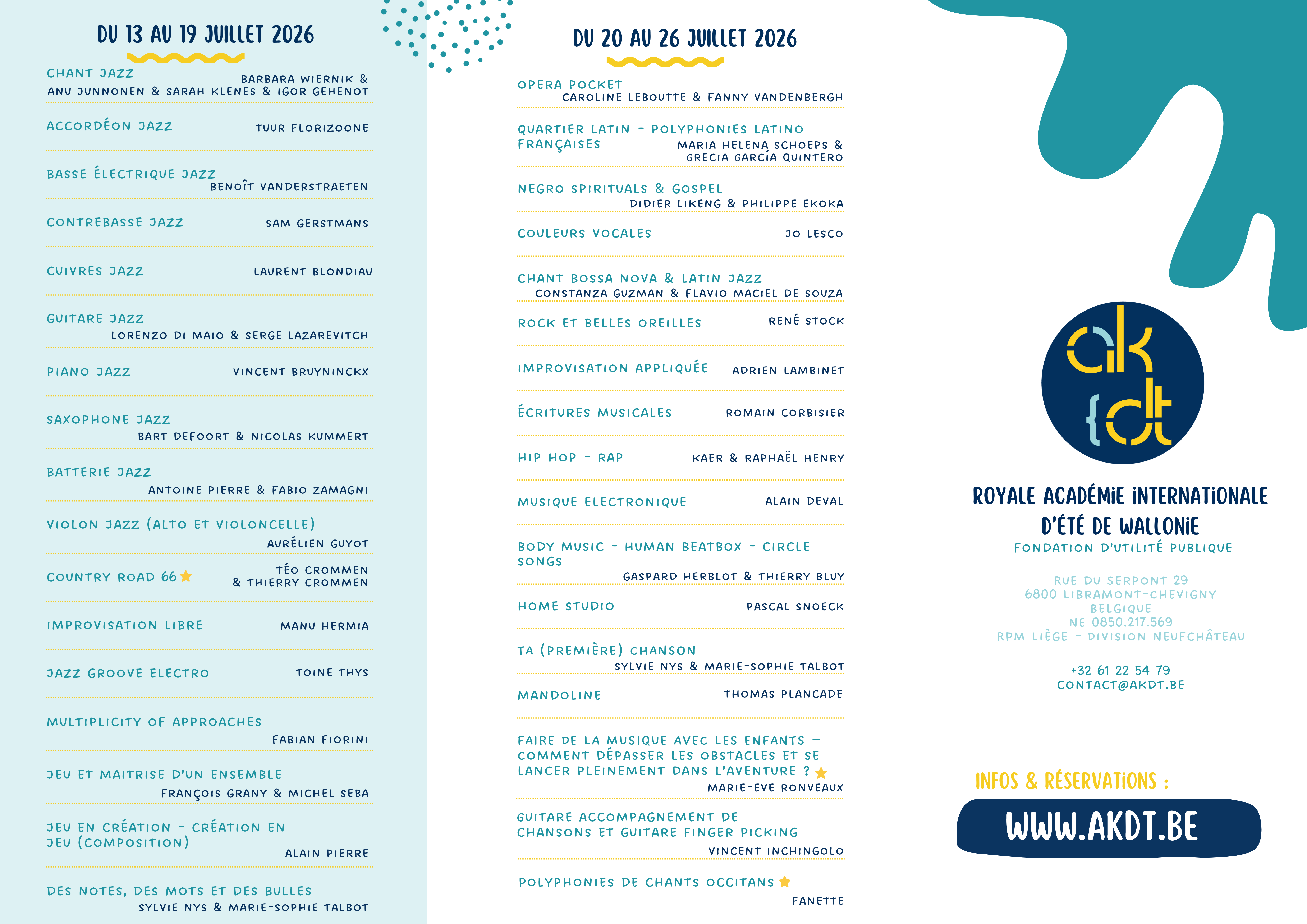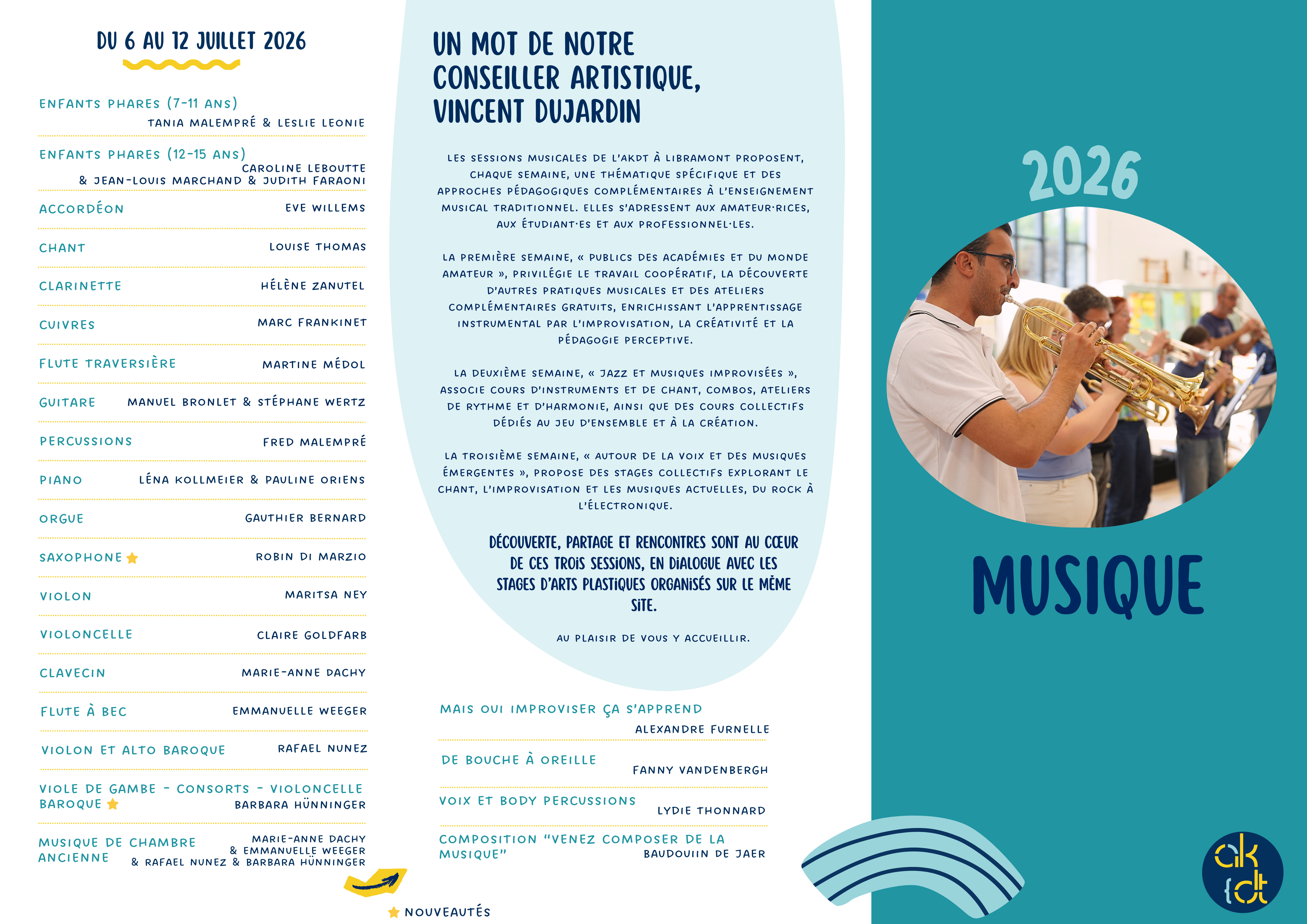 À partir du lundi 2 mars 2026, le descriptif détaillé de chaque stage sera dévoilé, afin de vous laisser encore plus de temps pour explorer et choisir l’atelier qui vous convient le mieux.
