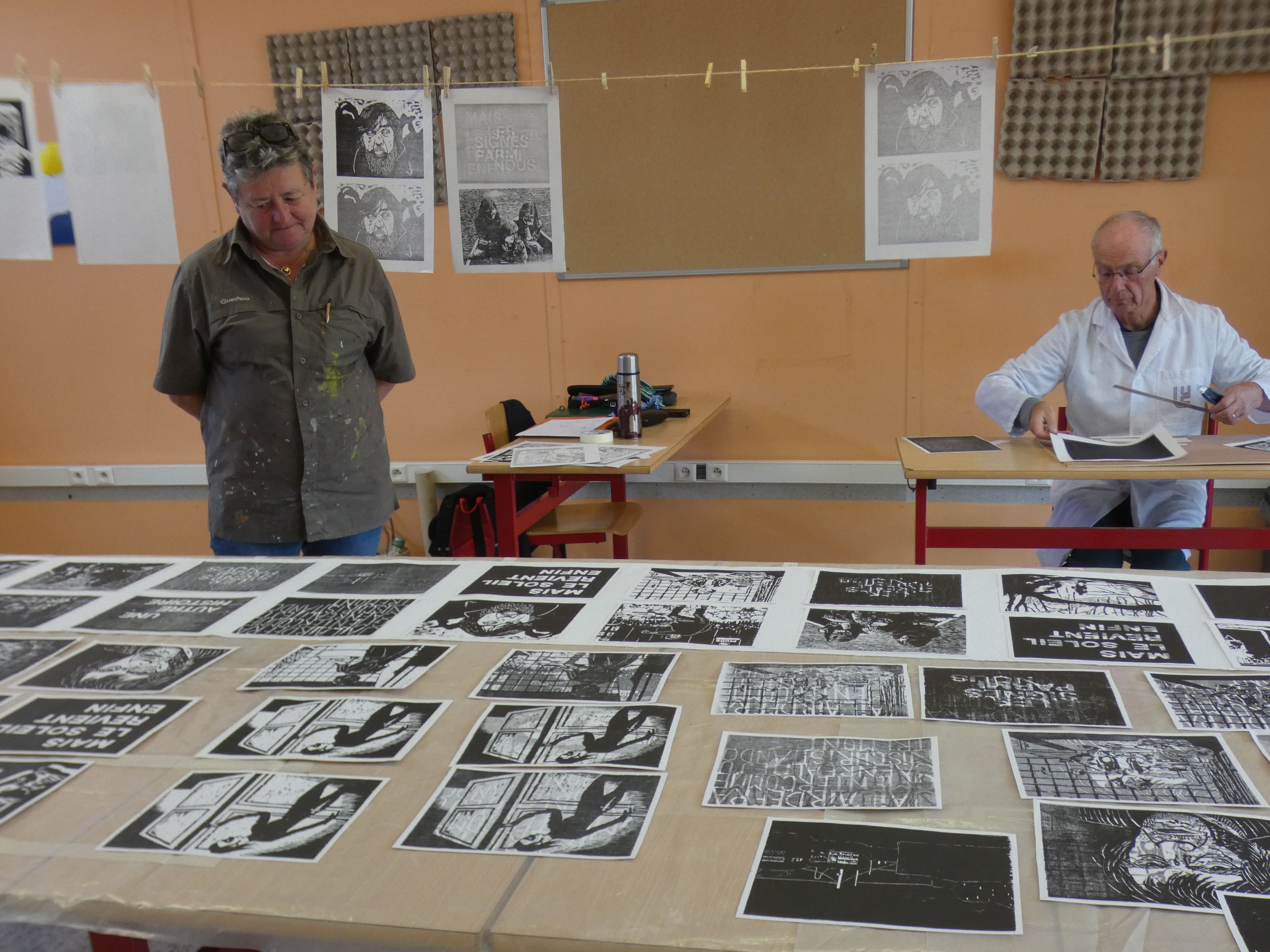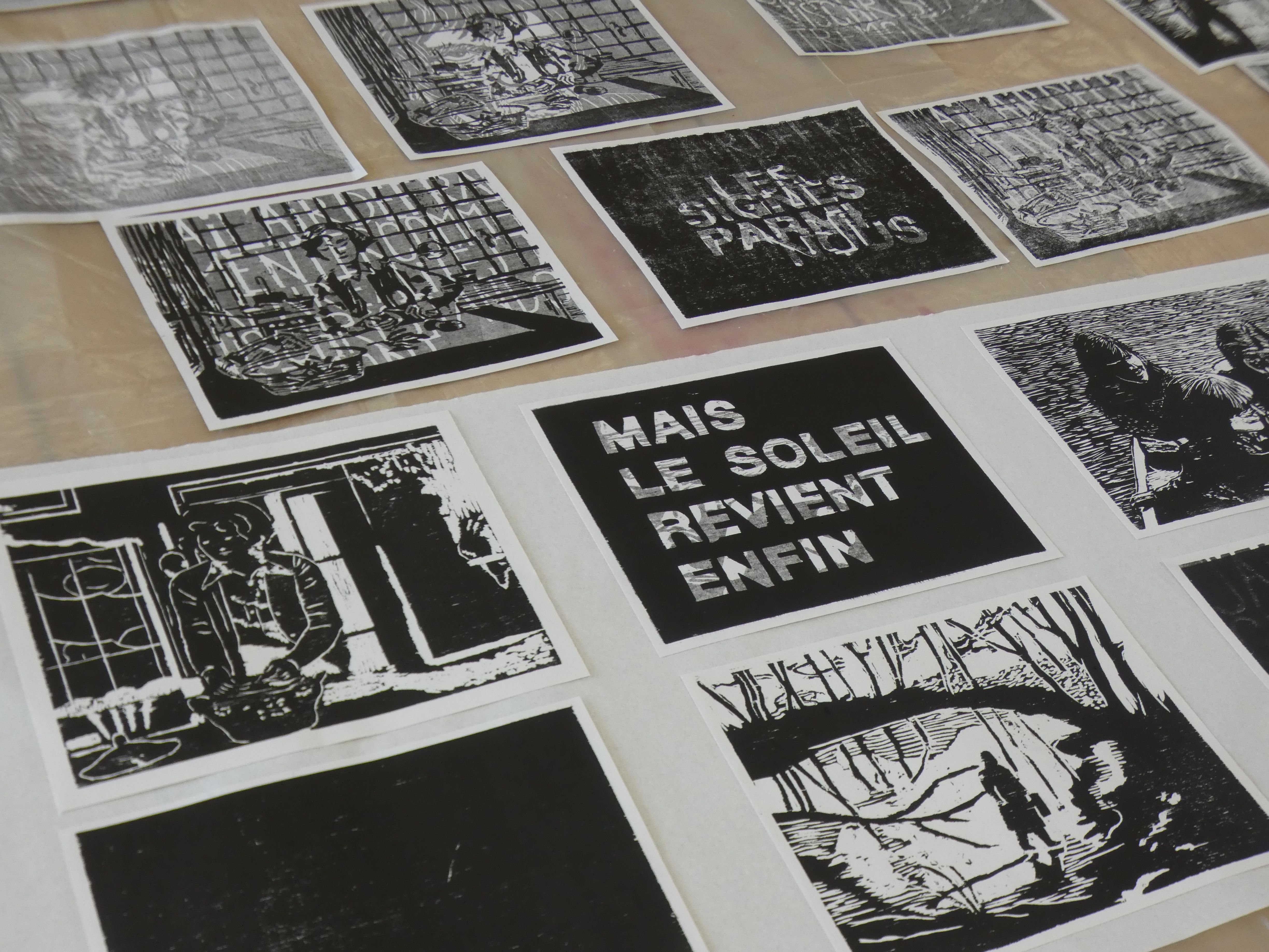 Les mots clés du stage sont : cinématogravures, bandes gravées, gravure sur bois, couleurs, textes / images, montage, impressions à l’estampage.
