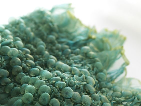 Le shibori en 3 dimensions, travail du tissu en volume consistant à fixer par la chaleur des plis