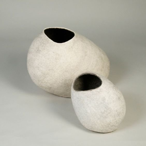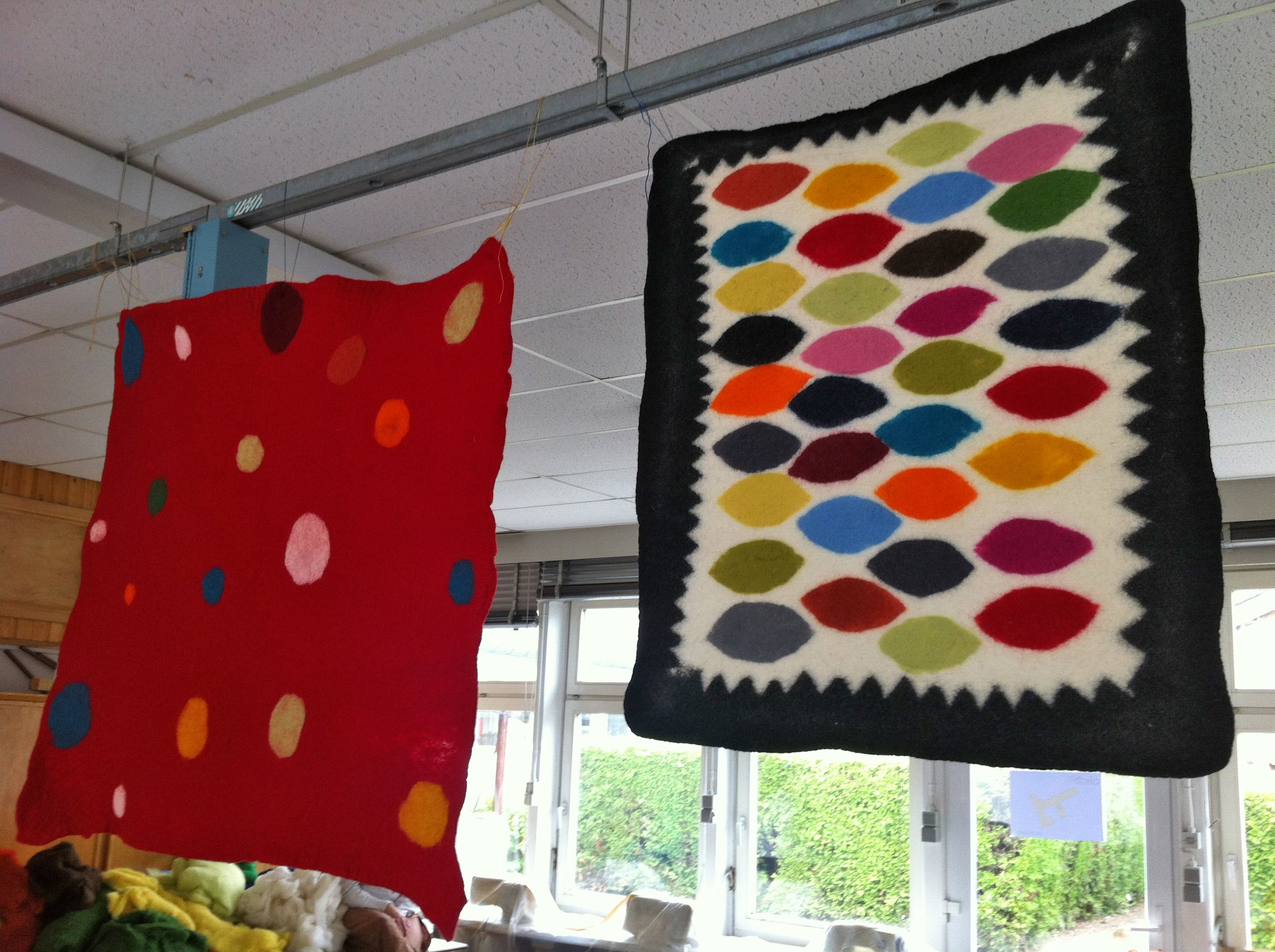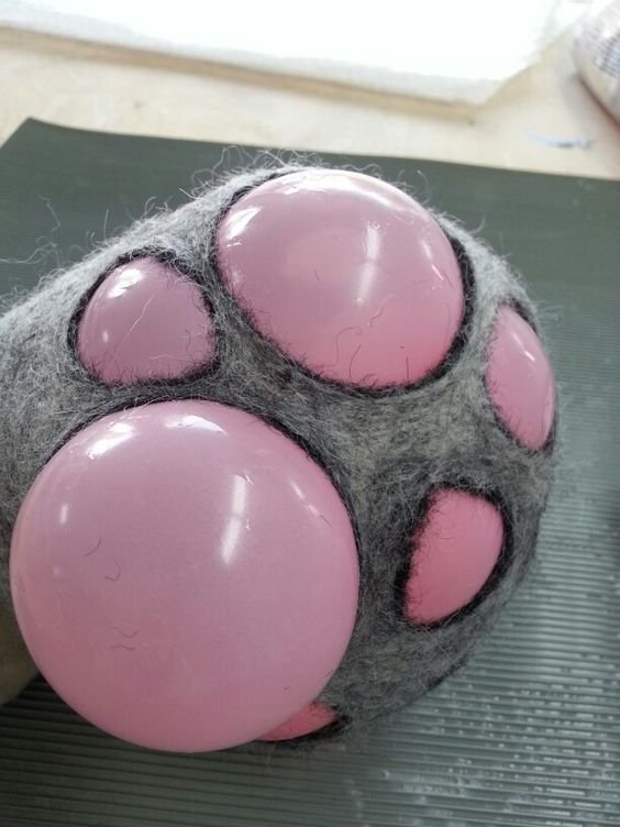 Le feutre, c'est-à-dire le travail de la laine en 3 dimensions, avec de l'eau chaude et du savon mais aussi à l'aiguille.