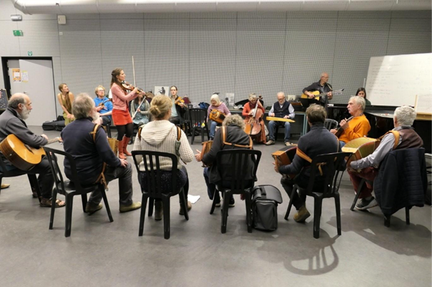 Deze stage staat open voor alle instrumenten, accordeons, strijkinstrumenten, blaasinstrumenten en percussie... Birgit (viool en doedelzak) en Joachim (diatonische accordeon, percussie) vullen elkaar perfect aan om alle facetten van dit tijdelijke orkest te begeleiden.