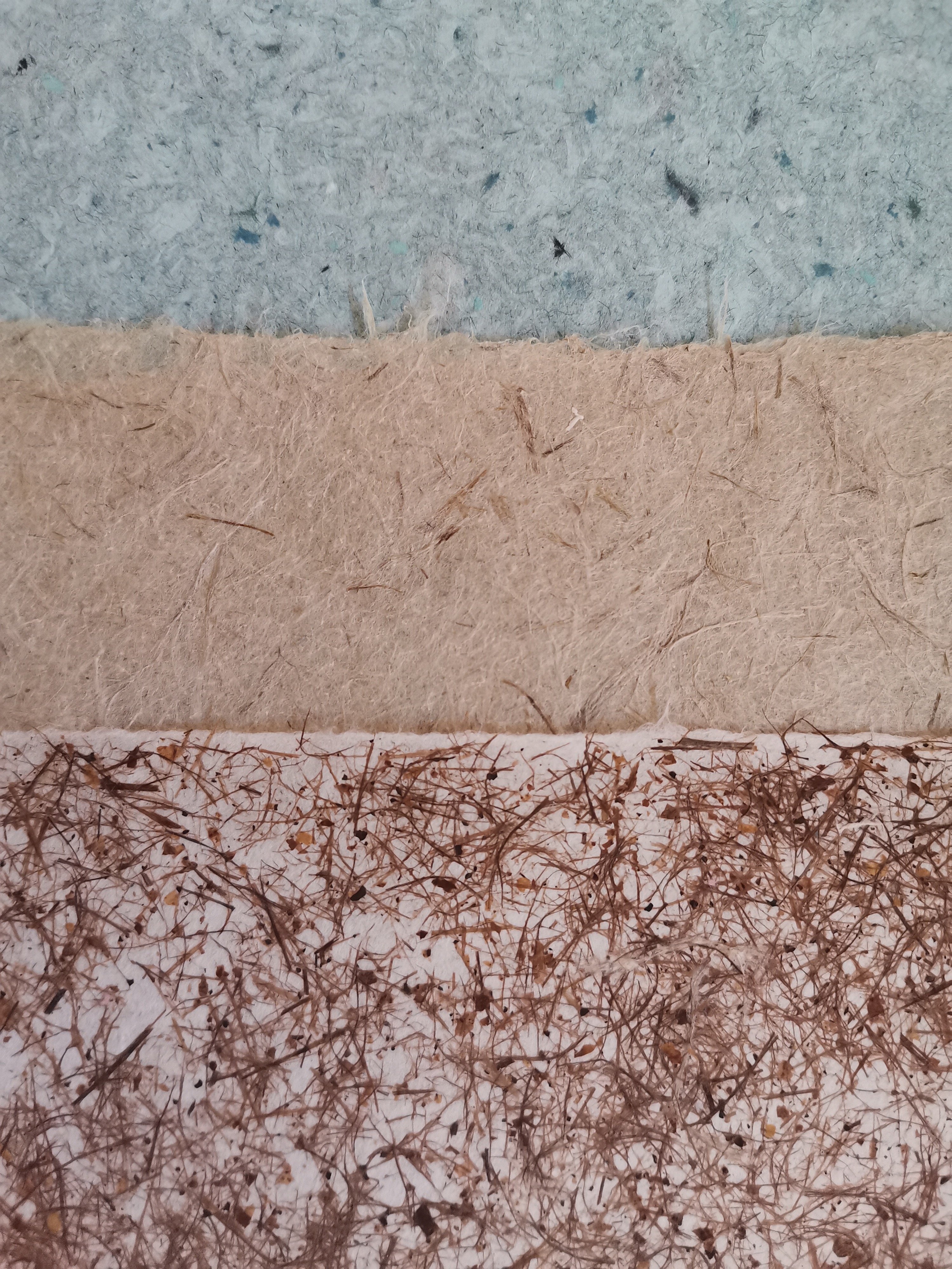 Om te beginnen zullen we eenvoudige vellen maken van gerecycleerde pulp en pulp van katoen, vlas of abaca. We zullen het koken en bewerken van plantaardige vezels zoals maïs, iris, daglelie of kozo testen om ze om te zetten in papier.
