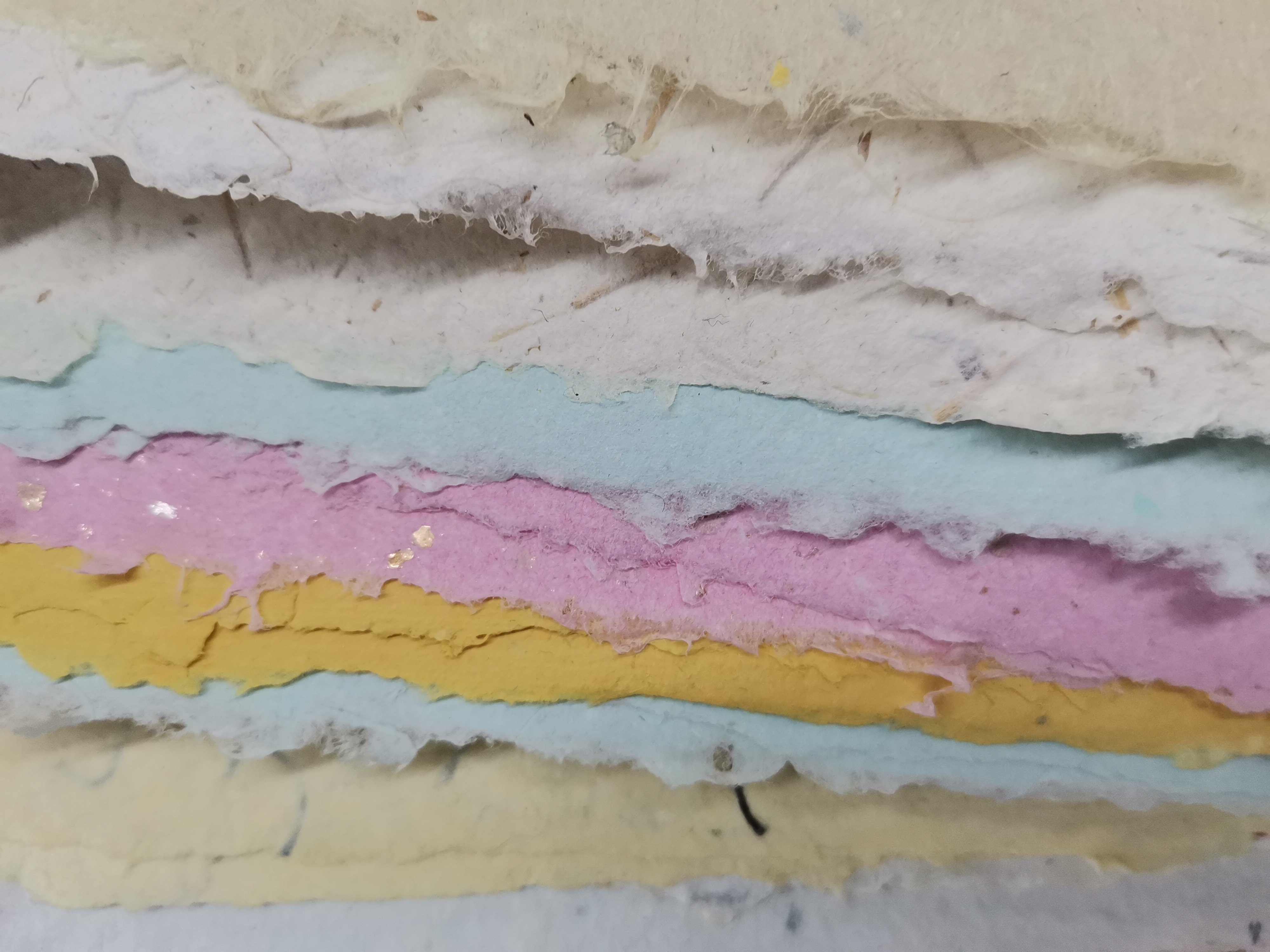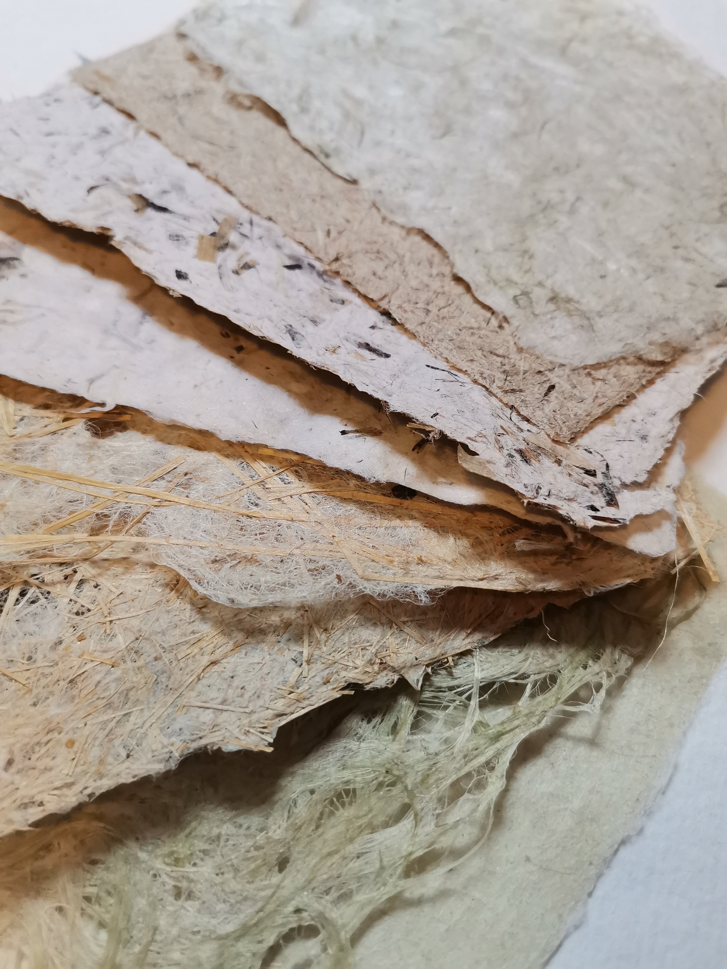 - Fijne elementen om in het papier te verwerken: papier, draden, fijne stoffen, kleine gedroogde plantjes, zaden...